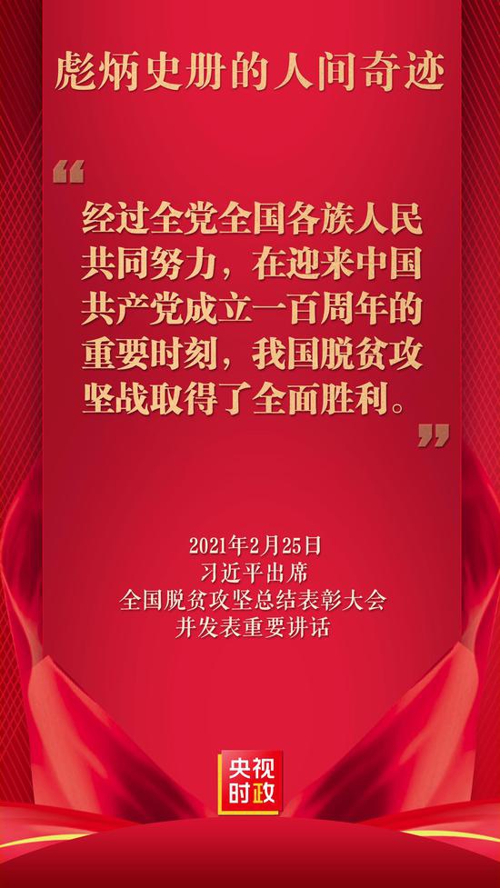 全國(guó)脫貧攻堅(jiān)總結(jié)表彰大會(huì)2月25日上午在北京人民大會(huì)堂隆重舉行。中共中央總書記、國(guó)家主席、中央軍委主席習(xí)近平向全國(guó)脫貧攻堅(jiān)楷模榮譽(yù)稱號(hào)獲得者頒獎(jiǎng)并發(fā)表重要講話。習(xí)近平莊嚴(yán)宣告,經(jīng)過(guò)全黨全國(guó)各族人民共同努力,在迎來(lái)中國(guó)共產(chǎn)黨成立一百...